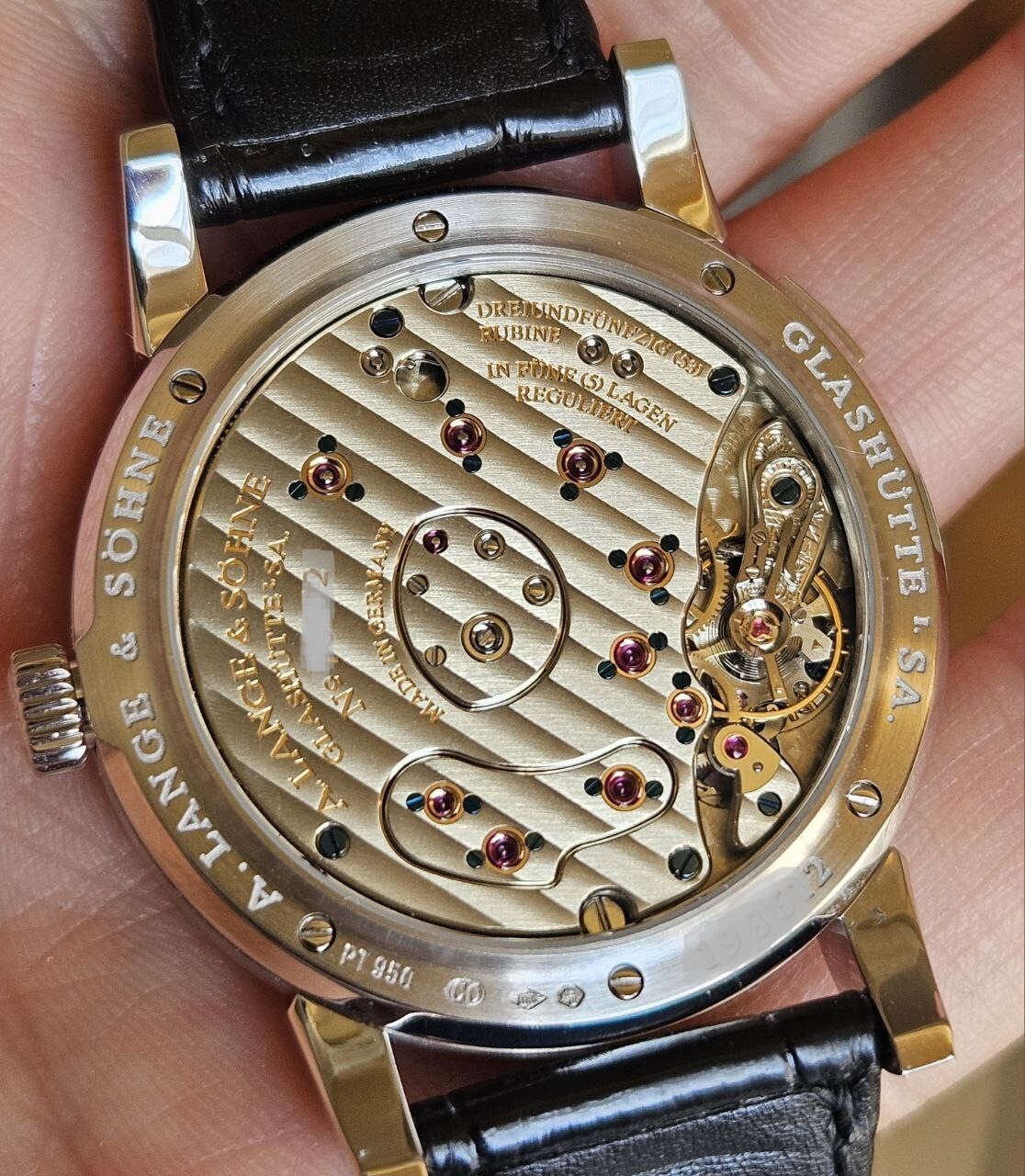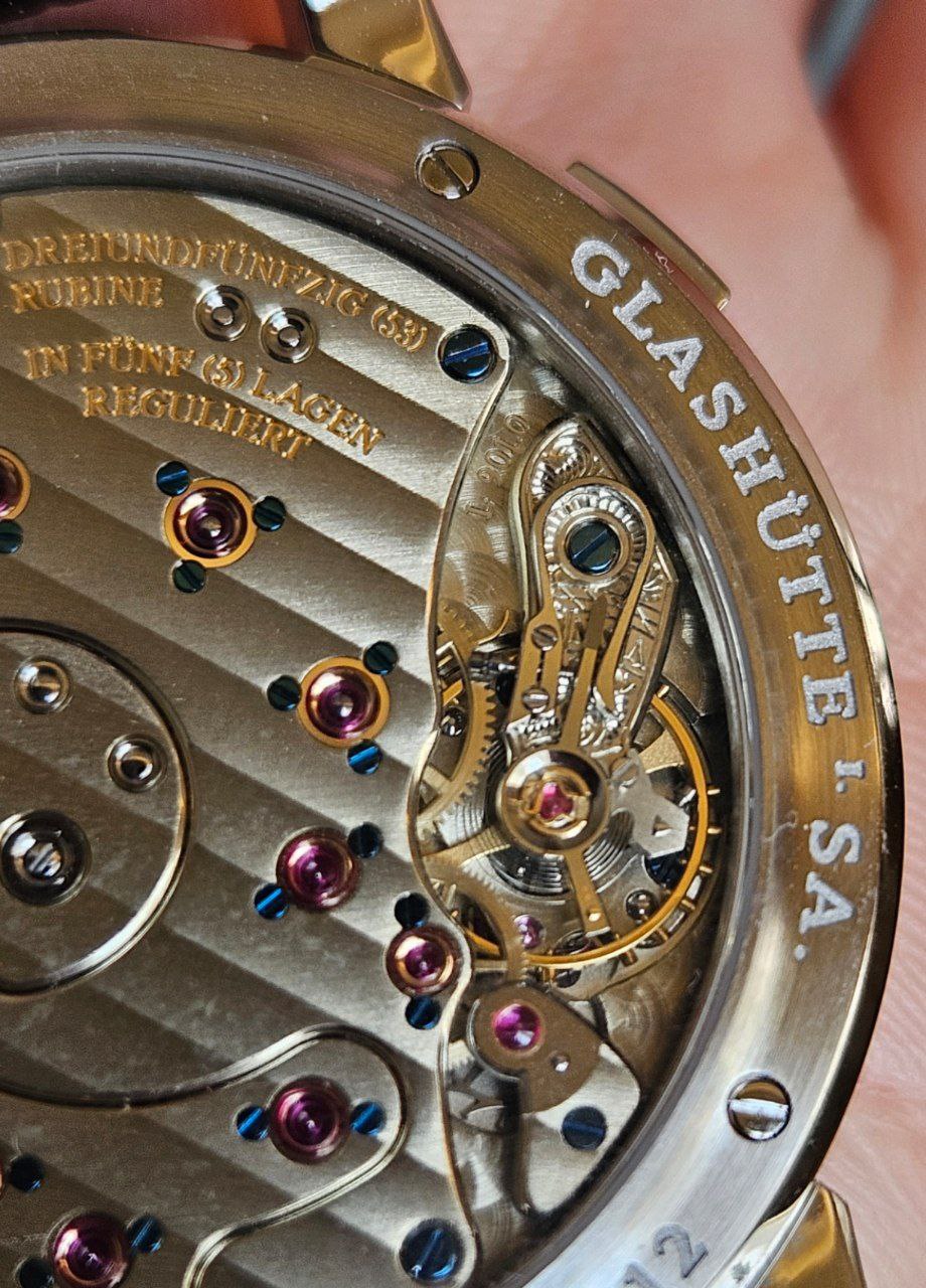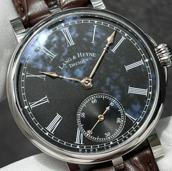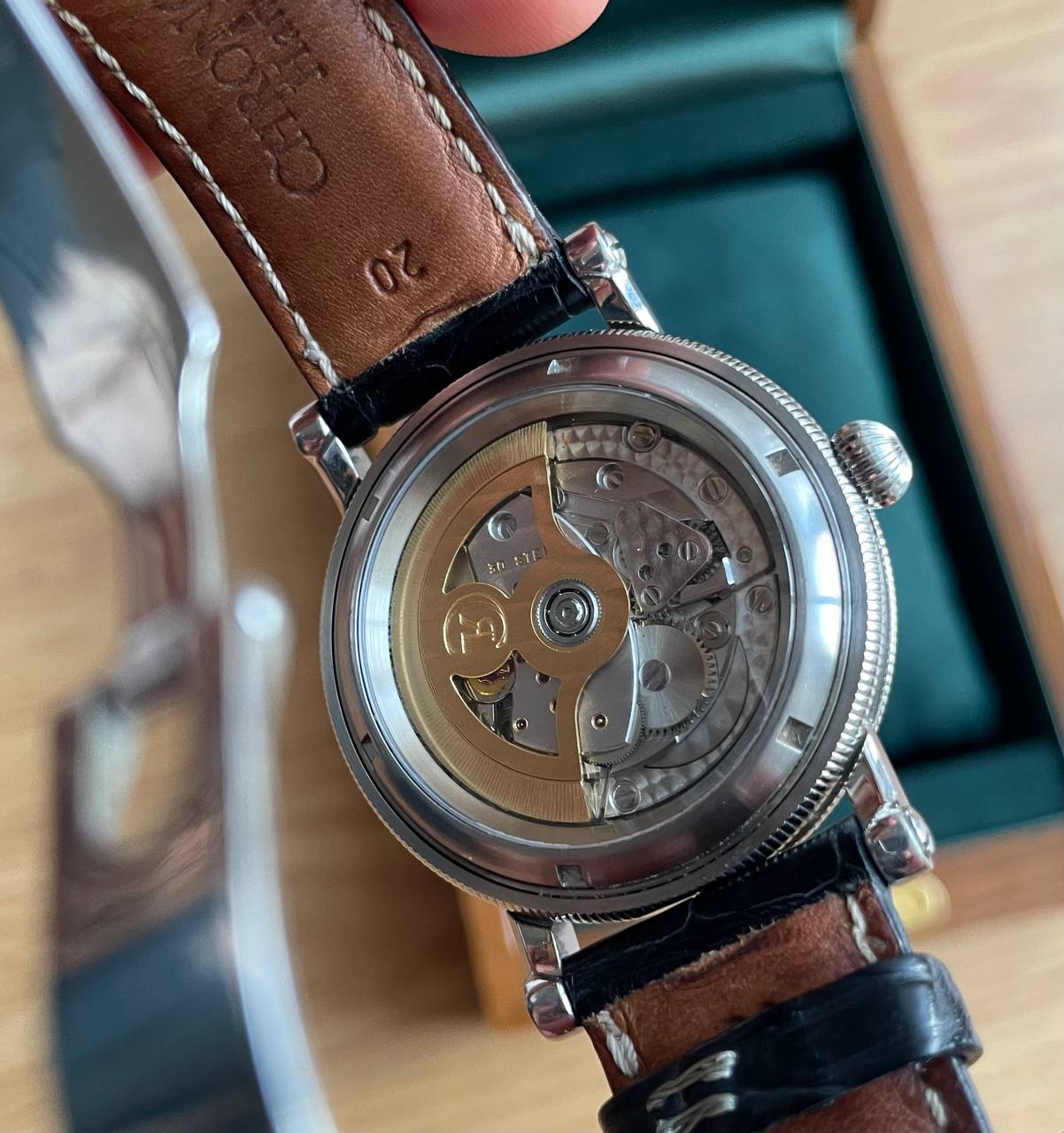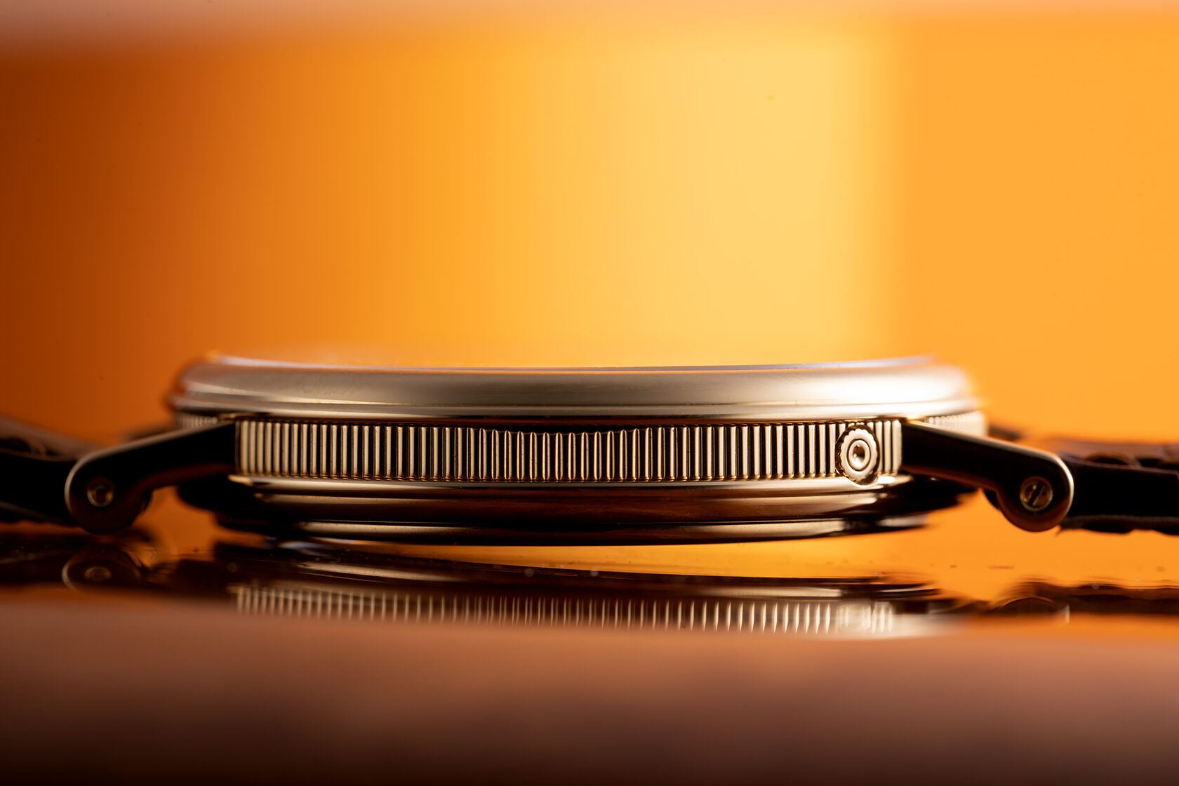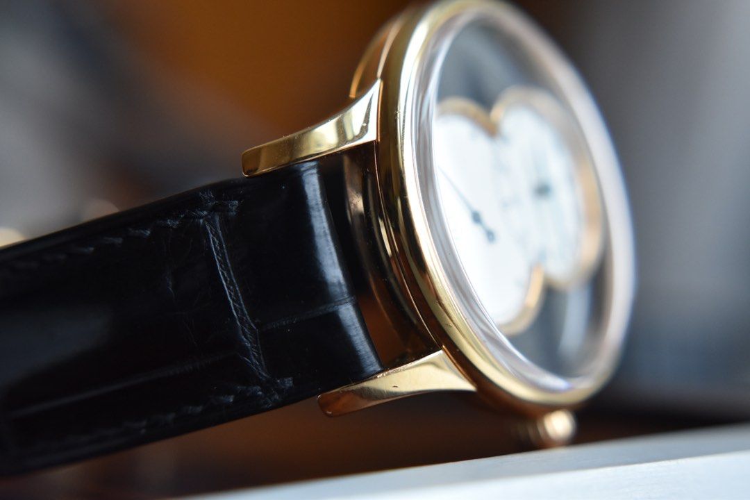 На гильошированном вручную посеребрённом циферблате отчетливо отображаются запас хода, дата и «хитрая» луна, а при ближайшем рассмотрении обнаруживается знаменитая секретная подпись Breguet.