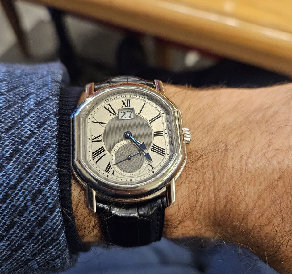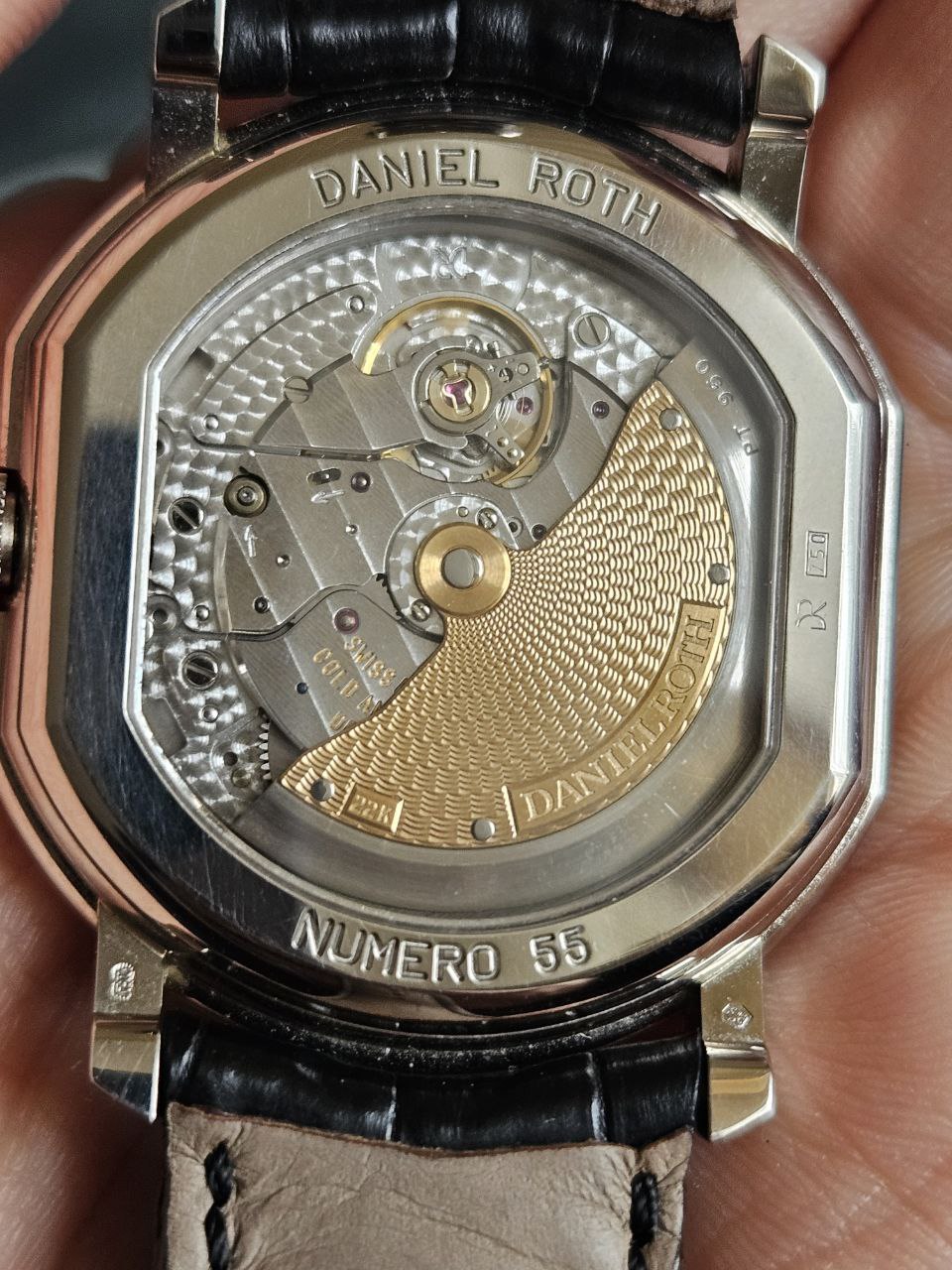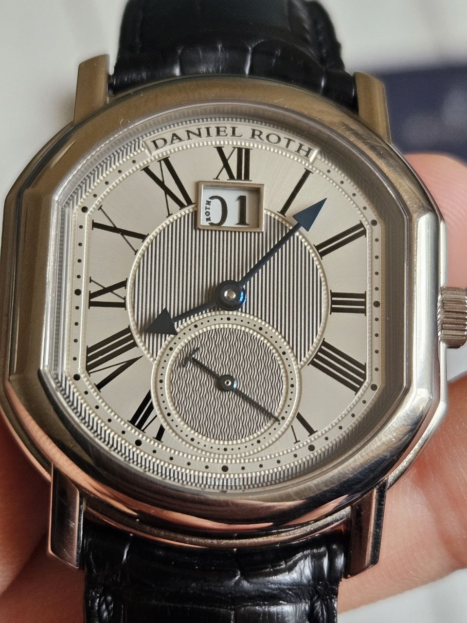 Основанная в 1989 году, компания Daniel Roth давно зарекомендовала себя как один из первых участников независимого часового пространства, которое с тех пор раздулось такими брендами, как F.P. Journe, MB&F и другие, стартовавшими на основе, заложенной Daniel Roth. Благодаря своему отличительному стилю, свежему взгляду на дизайн и техническому мастерству, часовая компания быстро обрела известность и была очень заметна в 1990-х годах, продолжая восхождение в высшие эшелоны часового дела. Благодаря сильному набору дизайнерского языка и впечатляющему послужному списку создания часов высокого часового искусства, бренд был продан BVLGARI в 2000 году, всего через год после того, как BVLGARI приобрела одноименный бренд Джеральда Дженты, еще один растущий лидер в независимом часовом деле. Представленные в самом начале 2000-х годов, вскоре после поглощения BVLGARI, часы из серии Datomax, представленные здесь, напоминают дизайн более ранних и наиболее коллекционных часов Daniel Roth с конструкцией ellipsocurvex из 18-каратного белого золота, предлагаемой в фирменном размере Дэниела Рота 35 мм x 38 мм и красивым гильошированным в ручную циферблатом.