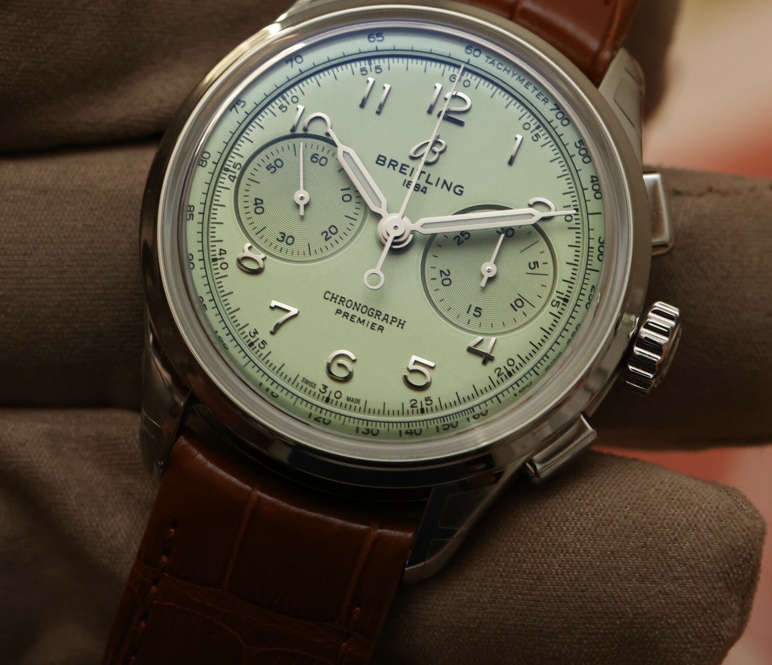 Хронографы Premier последнего поколения возвращают к жизни неподвластную времени элегантность и демонстрируют высочайший уровень часового мастерства Breitling благодаря целому ряду культовых усложнений Premier: Chronograph, Duograph и Datora. Благодаря прямоугольным кнопкам хронографа, дизайну хронографа bi-compax и арабским цифрам возрожденные хронографы Premier демонстрируют множество элегантных деталей дизайна, таких как канавки на боковых сторонах корпуса, открытые сапфировые задние крышки и стрелки в винтажном стиле.